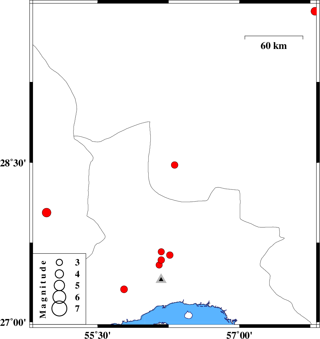 | 2022/05/25 | 05:41:16.6 | 10:11:16.6 | 27.585 | 56.173 | 6 | ML:3.3 | Hormozgan Province, 46 km North-West of Bandar-e abbas | ||