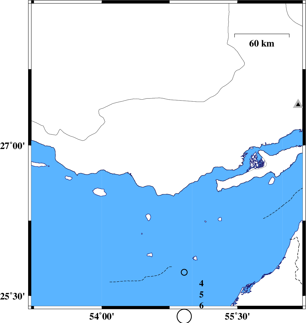 | 2022/06/14 | 14:09:42.1 | 18:39:42.1 | 26.654 | 54.258 | 12 | ML:4.4 | Persian Gulf, 61 km South-West of Bastak | ||