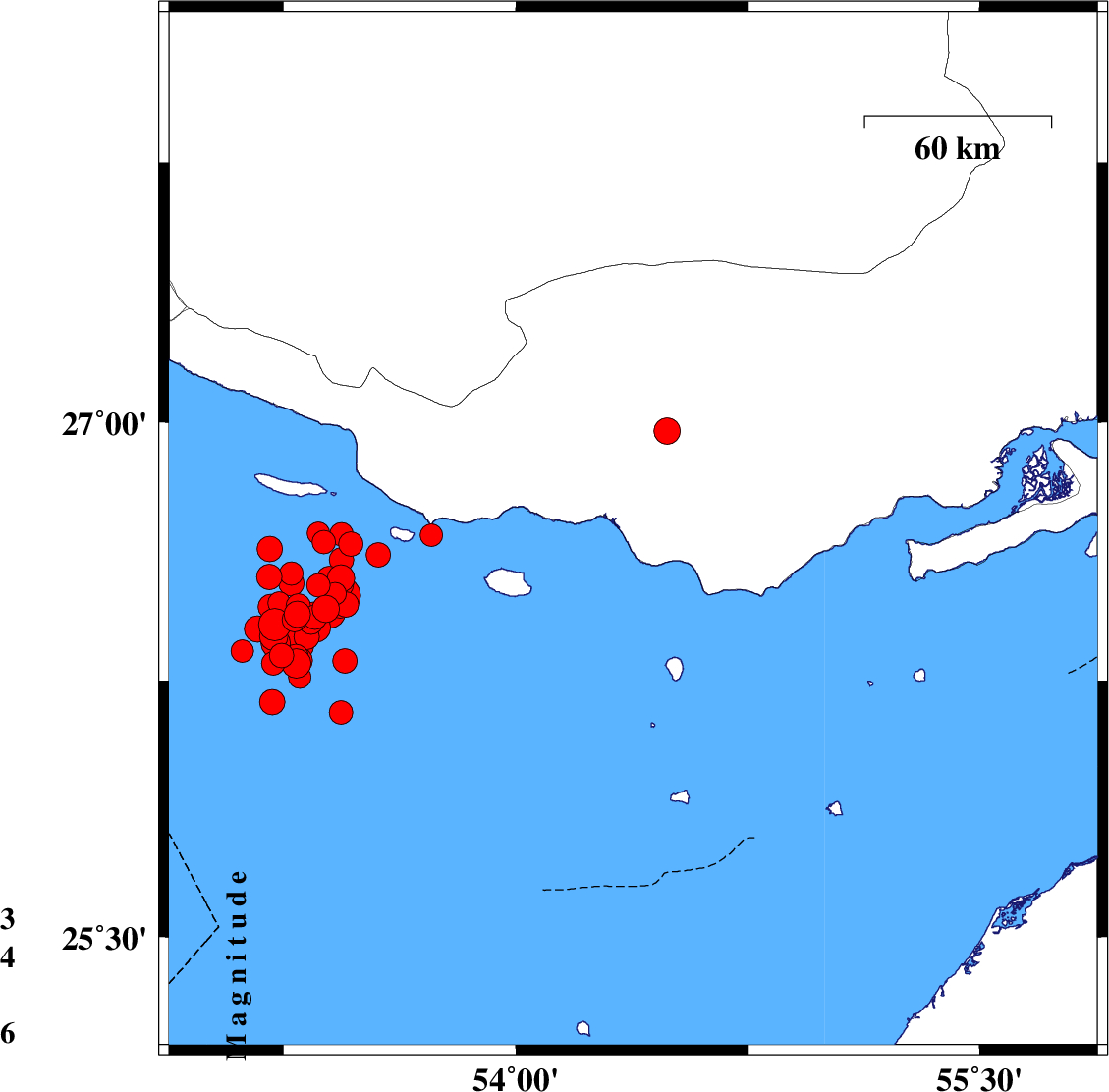 Persian Gulf, 63 km South-West of Bastak | |