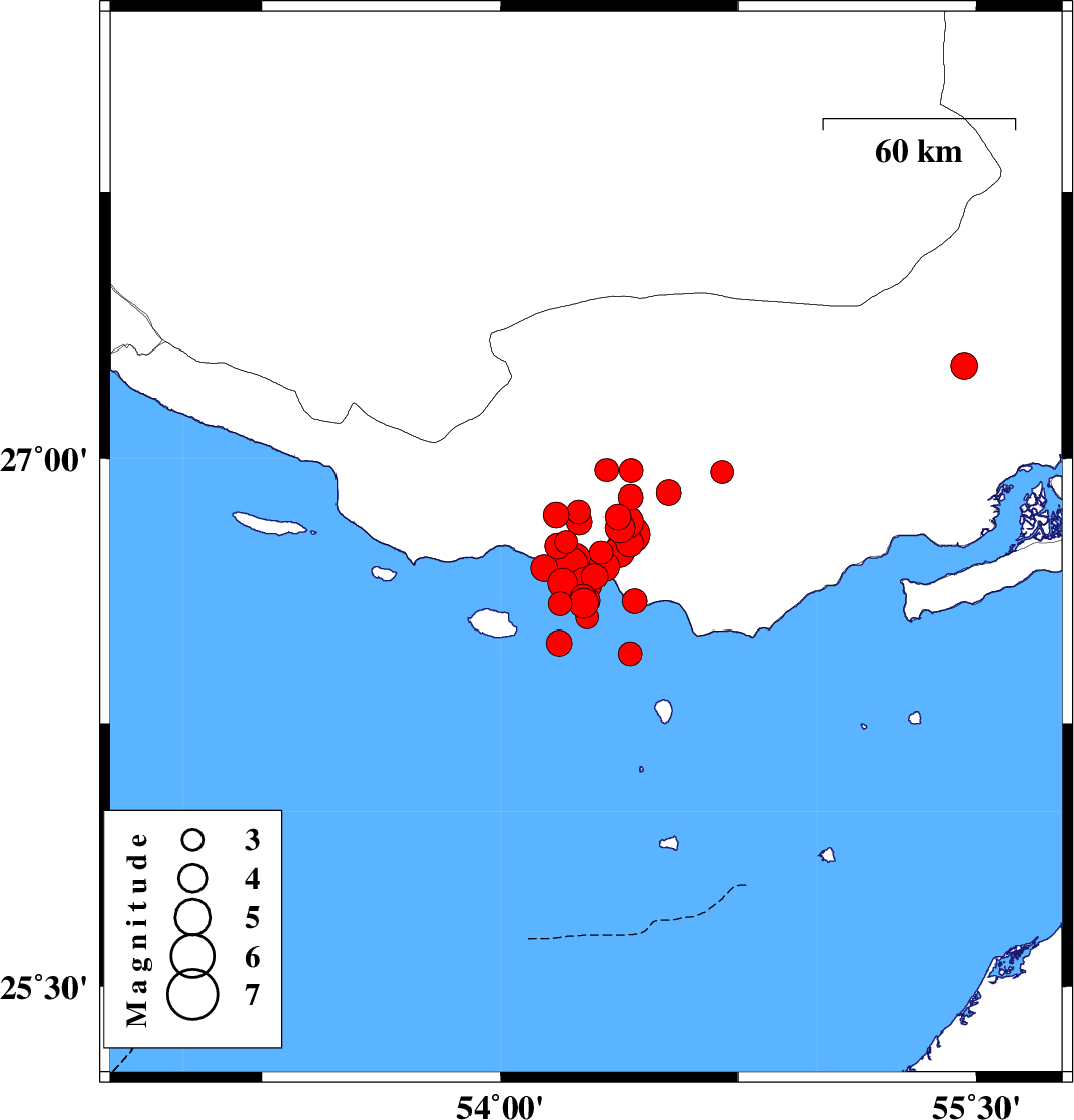 2022/06/15 19:53:54.8 00:23:54.8 26.68954.20212 ML:3.6 Persian Gulf, 59 km South-West of Bastak