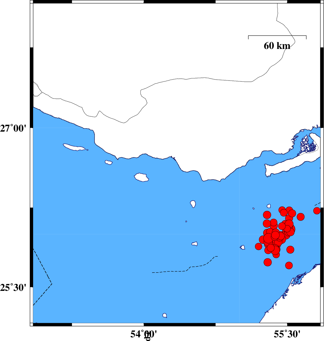 2022/06/16 11:18:16.2 15:48:16.2 26.65354.27912 ML:3.5 Persian Gulf, 61 km South of Bastak
