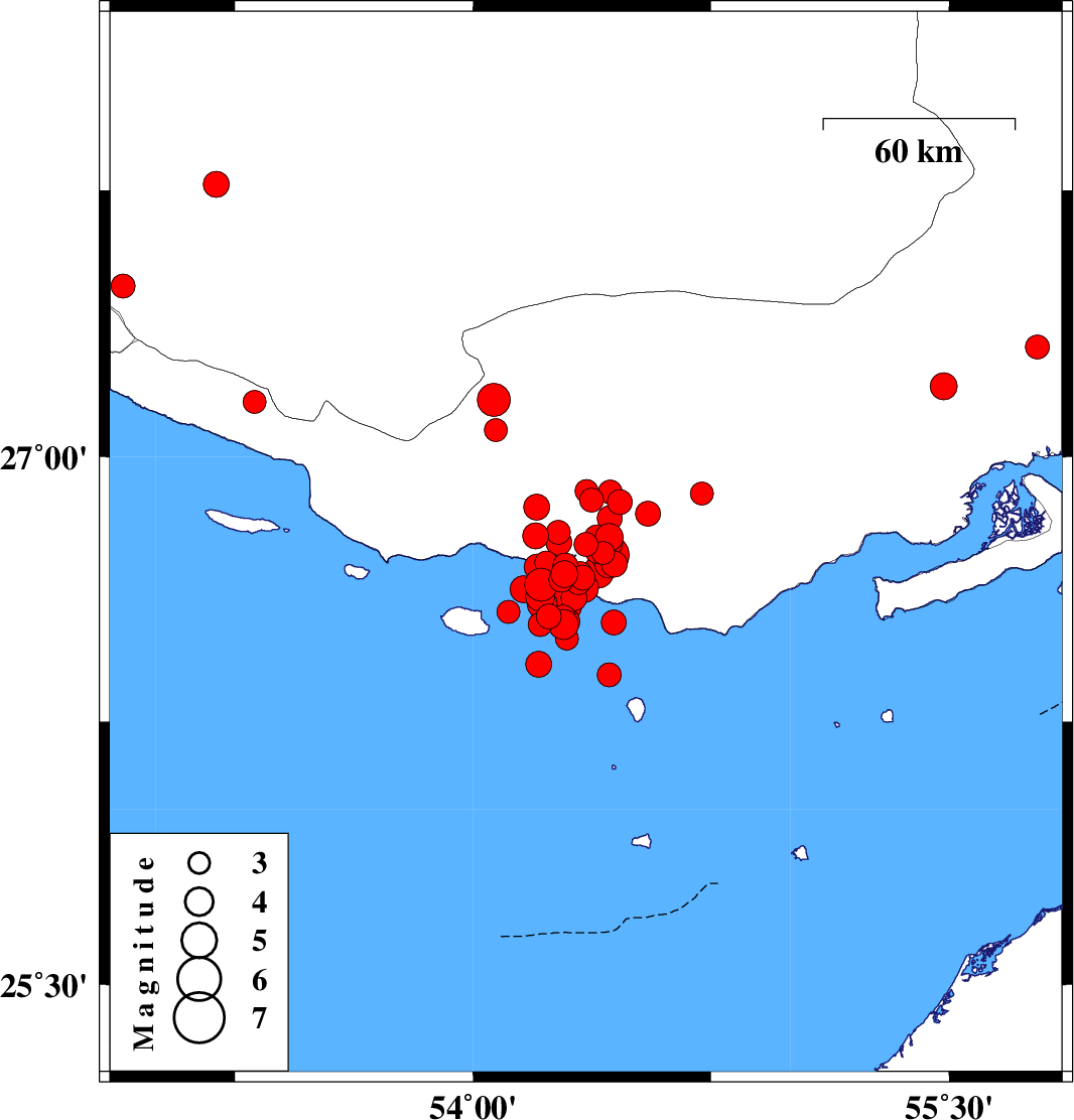 2022/06/16 11:18:16.2 15:48:16.2 26.65354.27912 ML:3.5 Persian Gulf, 61 km South of Bastak