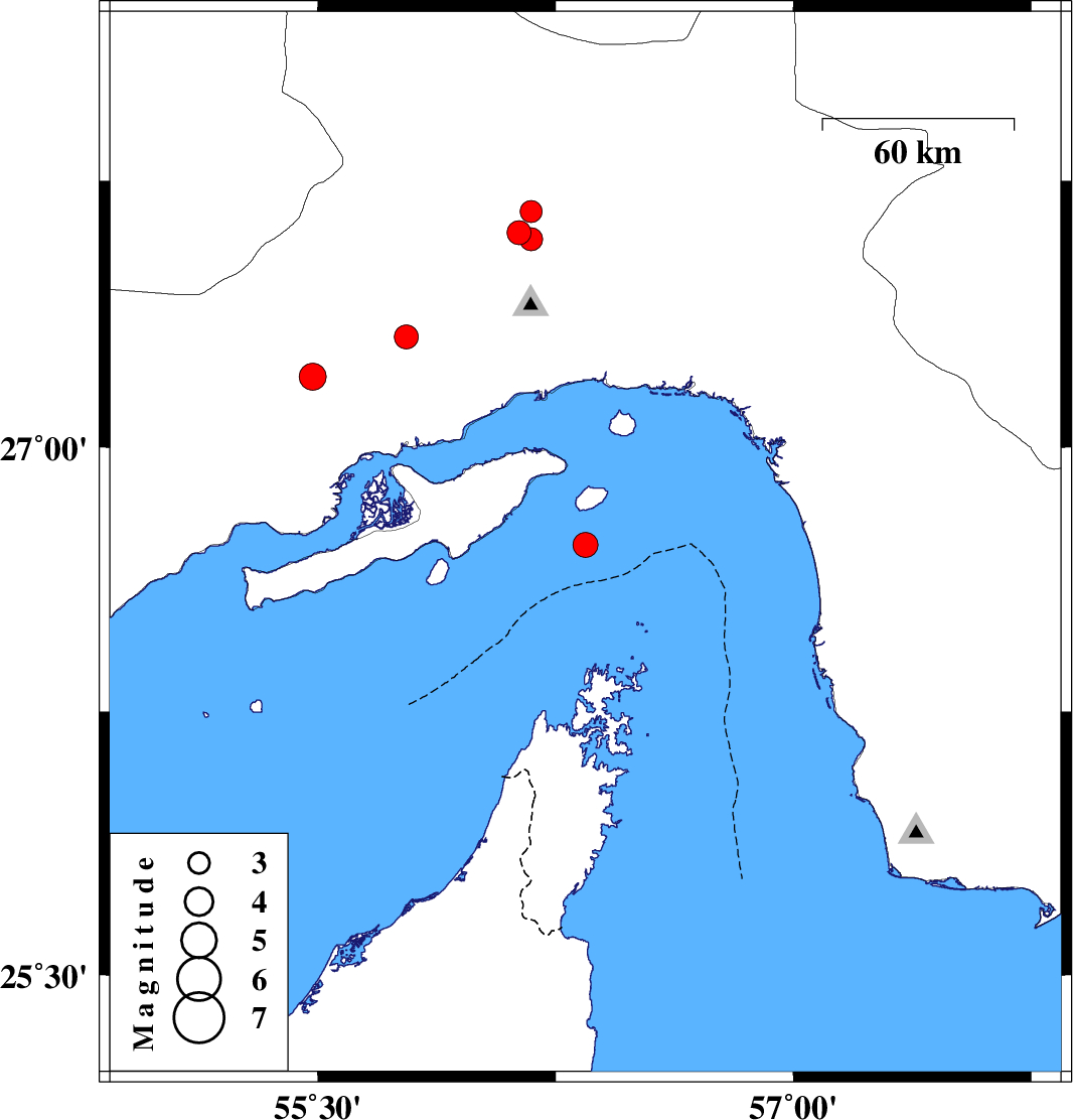 | 2022/05/25 | 05:41:16.6 | 10:11:16.6 | 27.585 | 56.173 | 6 | ML:3.3 | Hormozgan Province, 46 km North-West of Bandar-e abbas |