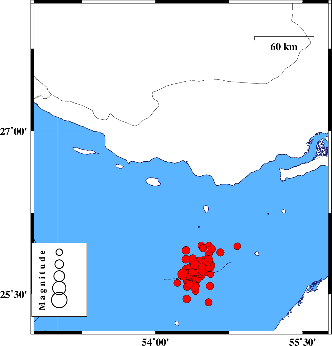 Persian Gulf, 63 km South-West of Bastak | |