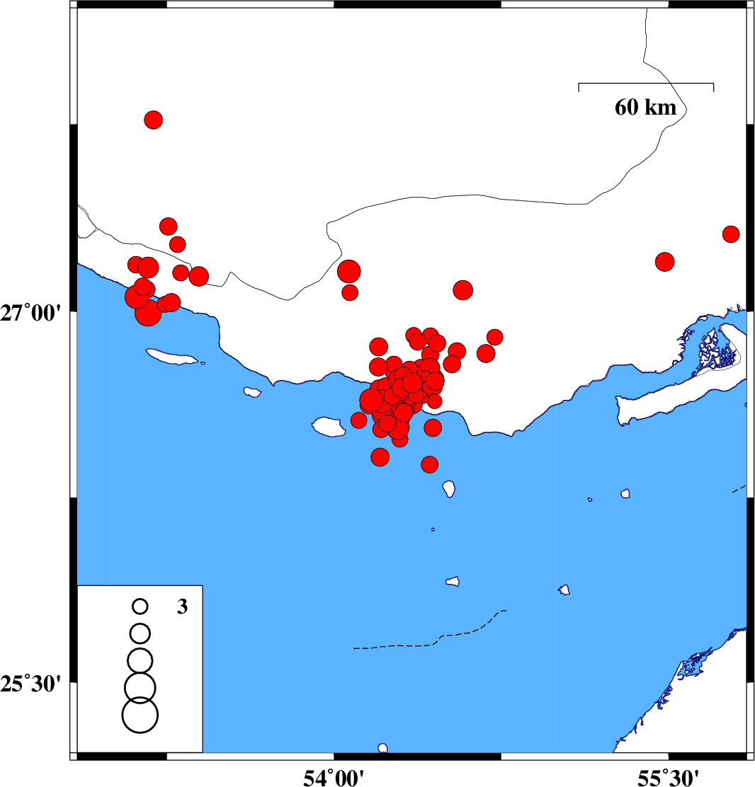 2022/06/16 11:18:16.2 15:48:16.2 26.65354.27912 ML:3.5 Persian Gulf, 61 km South of Bastak