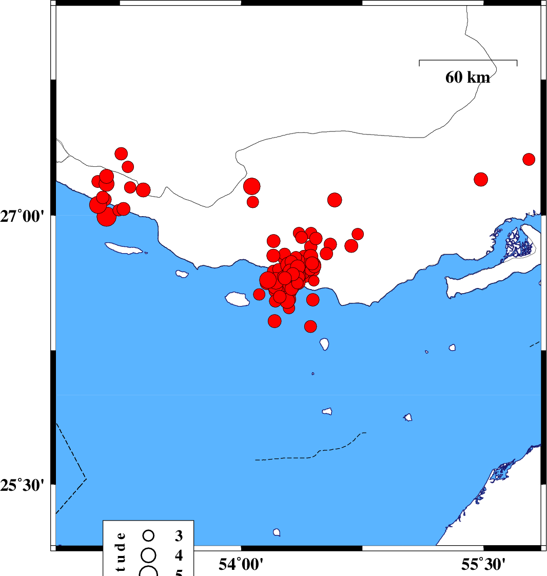 Persian Gulf, 63 km South-West of Bastak | |
