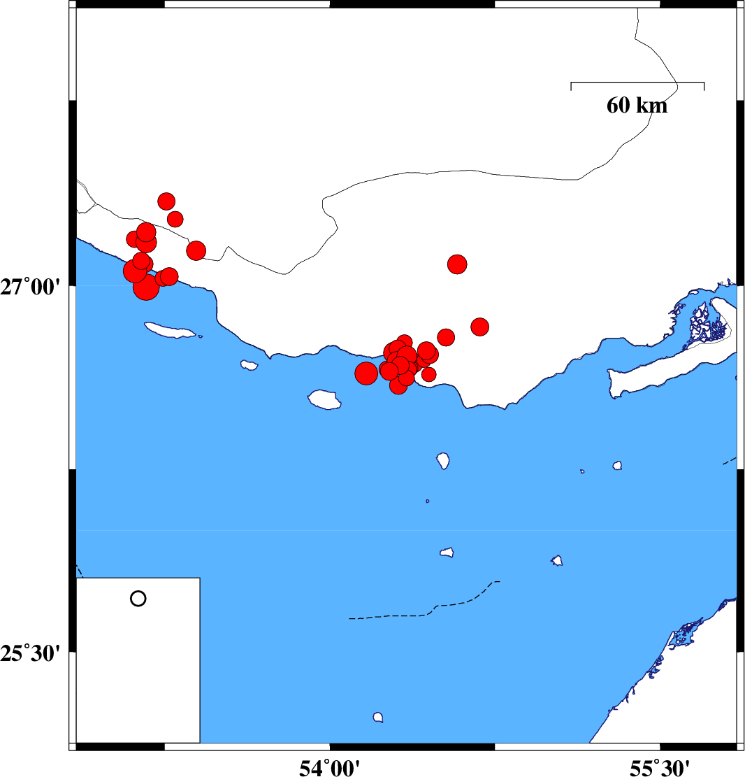 2022/06/19 09:24:06.4 13:54:06.4 26.65954.26112 ML:3.4 Persian Gulf, 61 km South-West of Bastak
