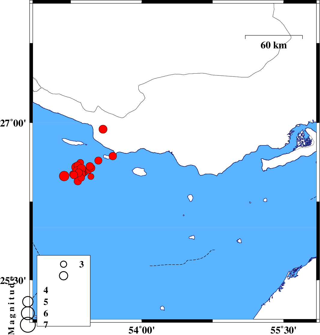2022/06/24 23:47:23.3 04:17:23.3 26.65154.2712 ML:3.7 Persian Gulf, 62 km South of Bastak