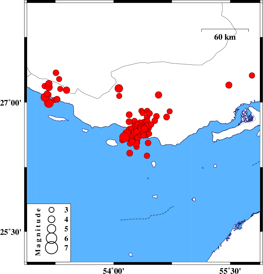 2022/06/16 11:18:16.2 15:48:16.2 26.65354.27912 ML:3.5 Persian Gulf, 61 km South of Bastak