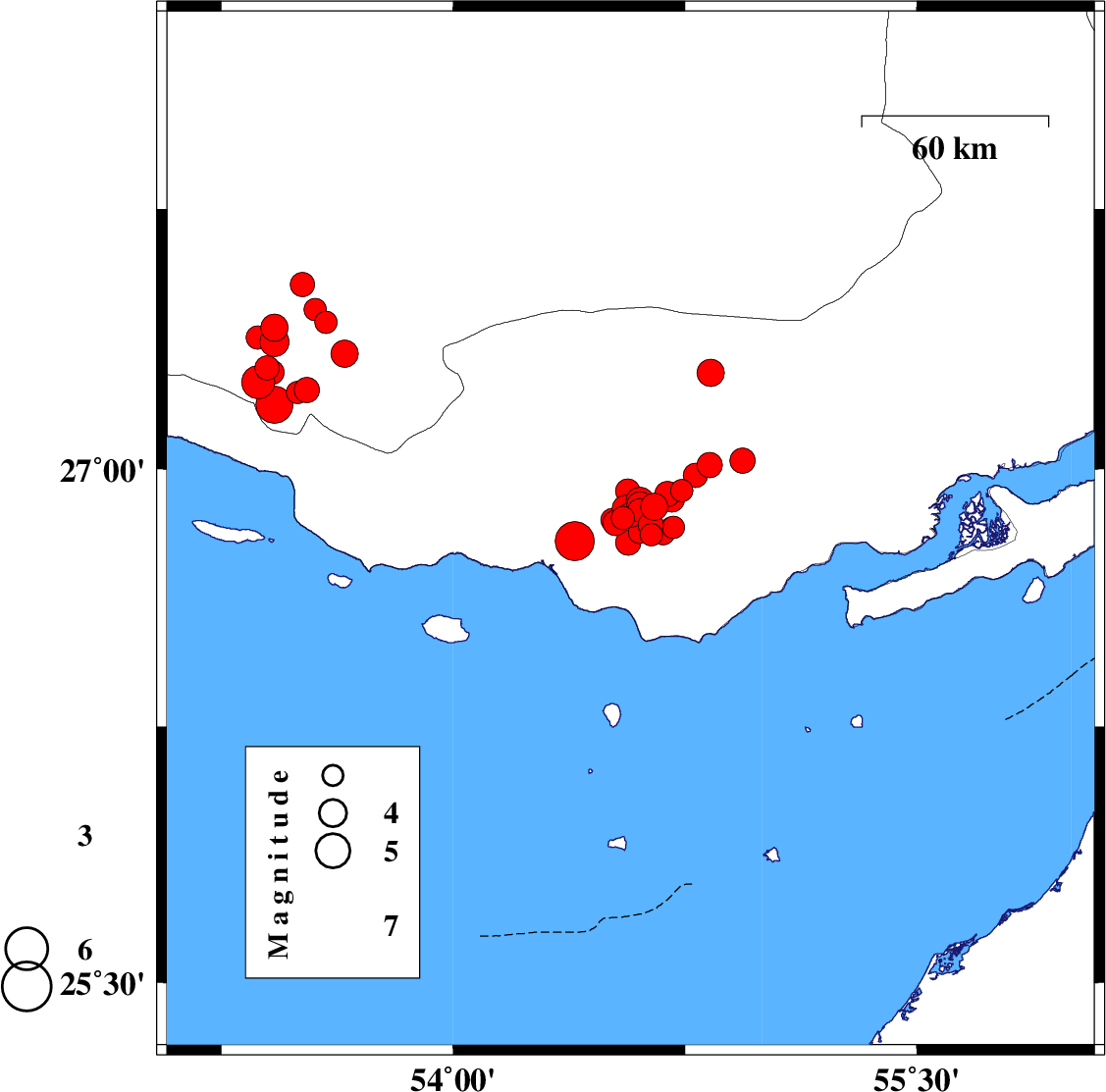 2022/06/21 07:05:05.4 11:35:05.4 26.69254.30319 ML:4 Persian Gulf, 57 km South of Bastak