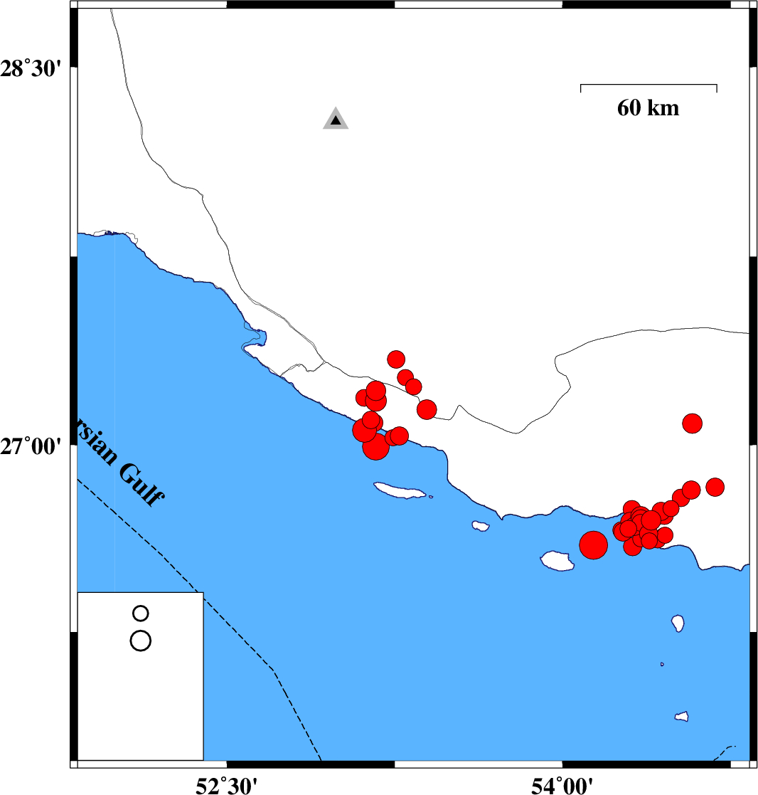 2022/06/24 04:58:40.2 09:28:40.2 26.62454.34812 ML:3.3 Persian Gulf, 64 km South of Bastak