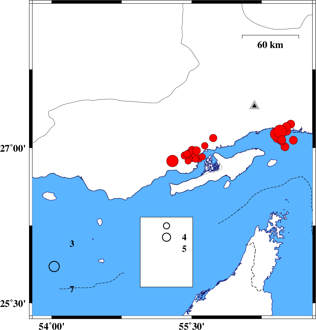 2022/06/24 23:47:23.3 04:17:23.3 26.65154.2712 ML:3.7 Persian Gulf, 62 km South of Bastak