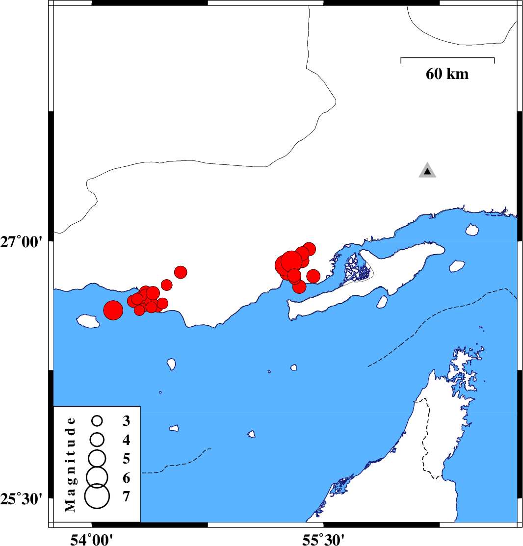 2022/06/24 23:47:23.3 04:17:23.3 26.65154.2712 ML:3.7 Persian Gulf, 62 km South of Bastak