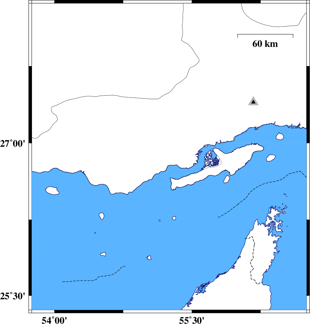 2022/06/24 04:58:40.2 09:28:40.2 26.62454.34812 ML:3.3 Persian Gulf, 64 km South of Bastak