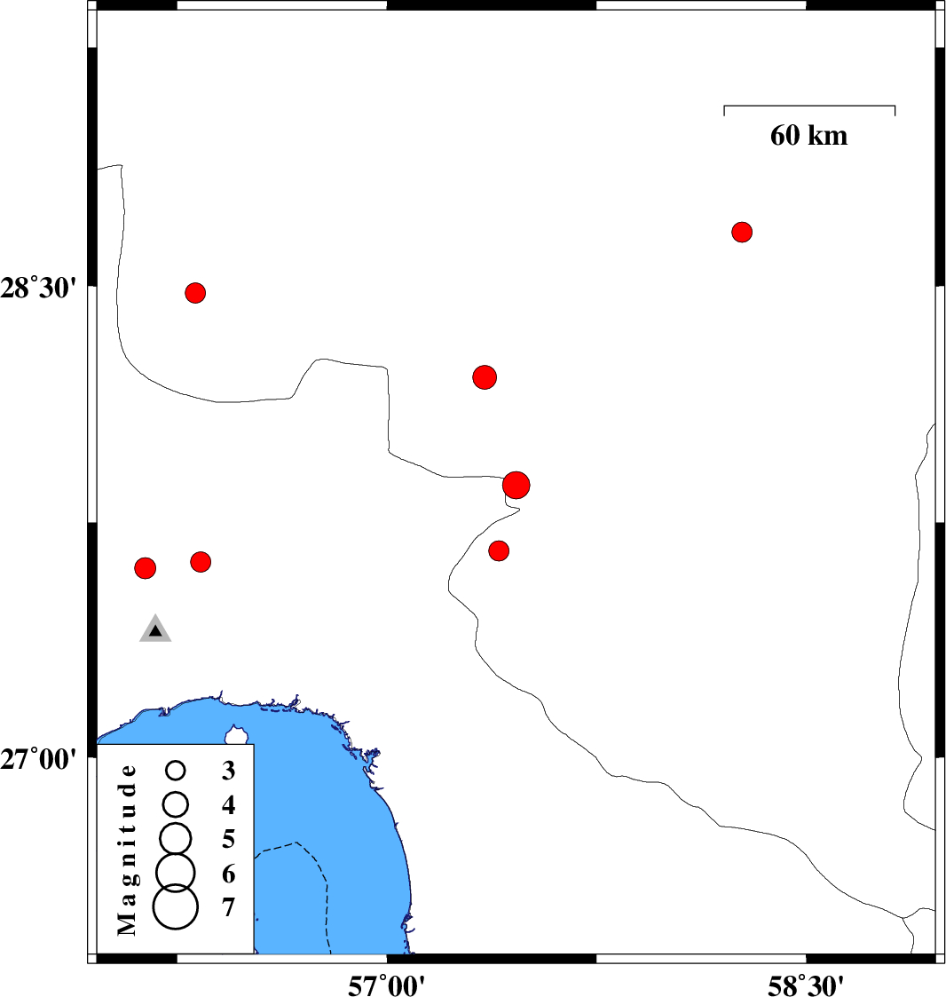 | 2022/07/01 | 19:28:31.4 | 23:58:31.4 | 28.21 | 57.349 | 12 | ML:3.8 | Kerman Province, 45 km North-West of Kahnuj | ||