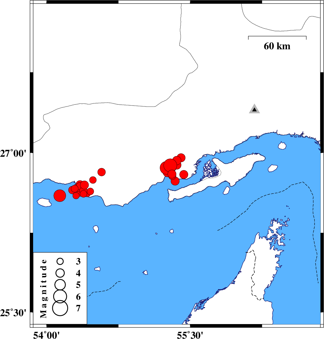 2022/06/24 23:47:23.3 04:17:23.3 26.65154.2712 ML:3.7 Persian Gulf, 62 km South of Bastak