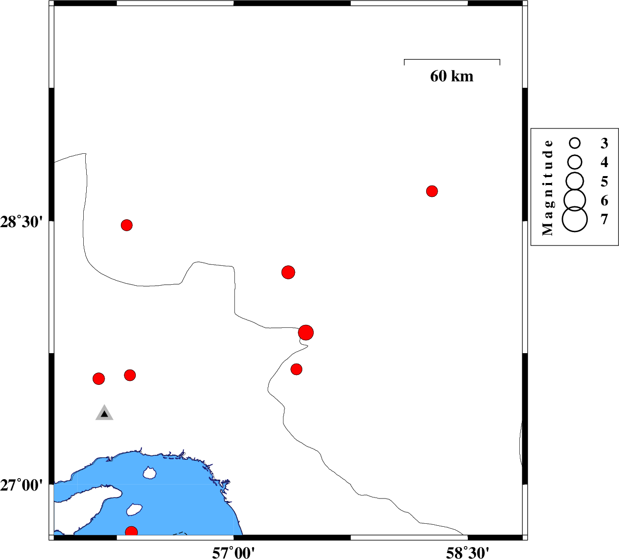| 2022/07/01 | 19:28:31.4 | 23:58:31.4 | 28.21 | 57.349 | 12 | ML:3.8 | Kerman Province, 45 km North-West of Kahnuj | ||