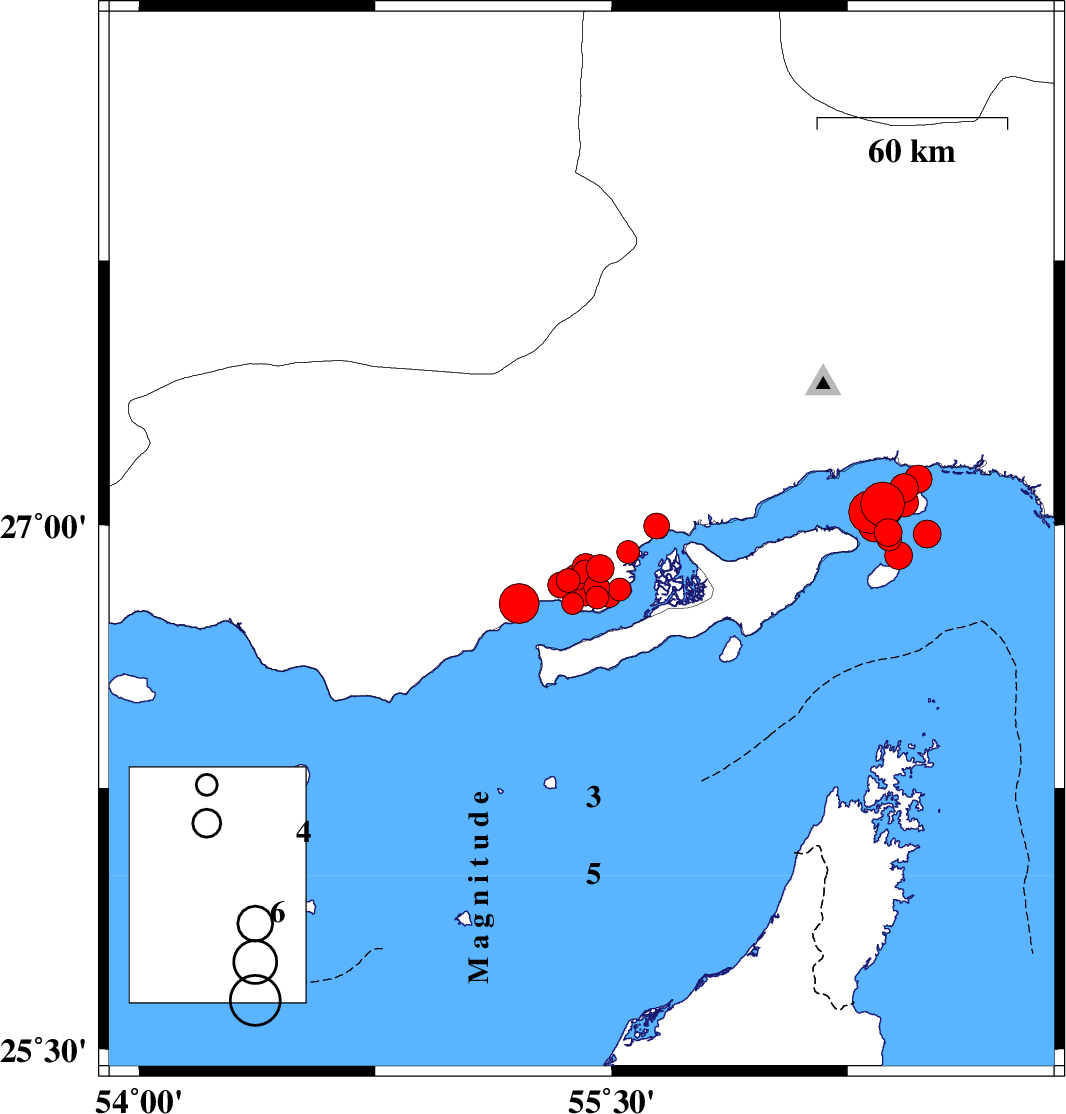 2022/06/24 04:58:40.2 09:28:40.2 26.62454.34812 ML:3.3 Persian Gulf, 64 km South of Bastak