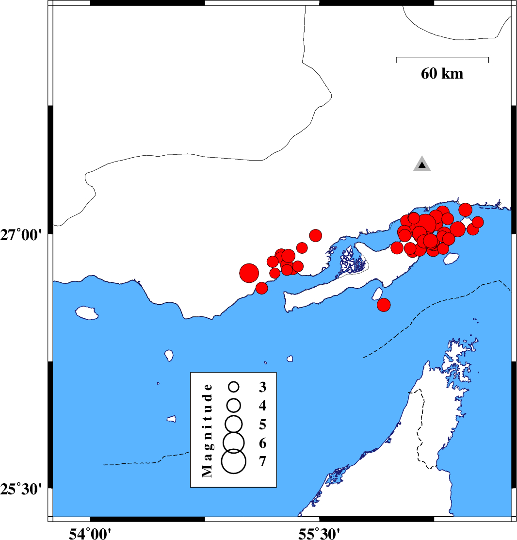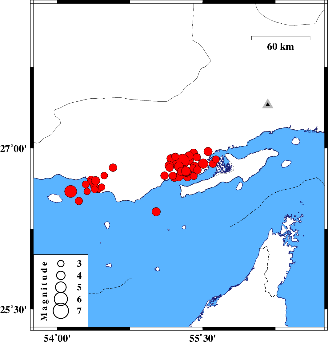 2022/07/01 23:25:18.4 03:55:18.4 26.88255.29219 ML:6.2 Hormozgan Province, 59 km North-East of Bandar-e lengeh