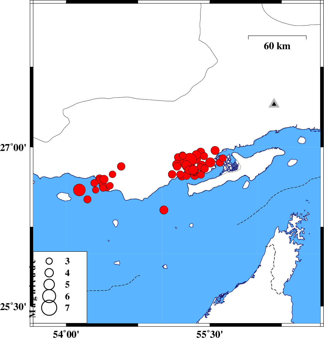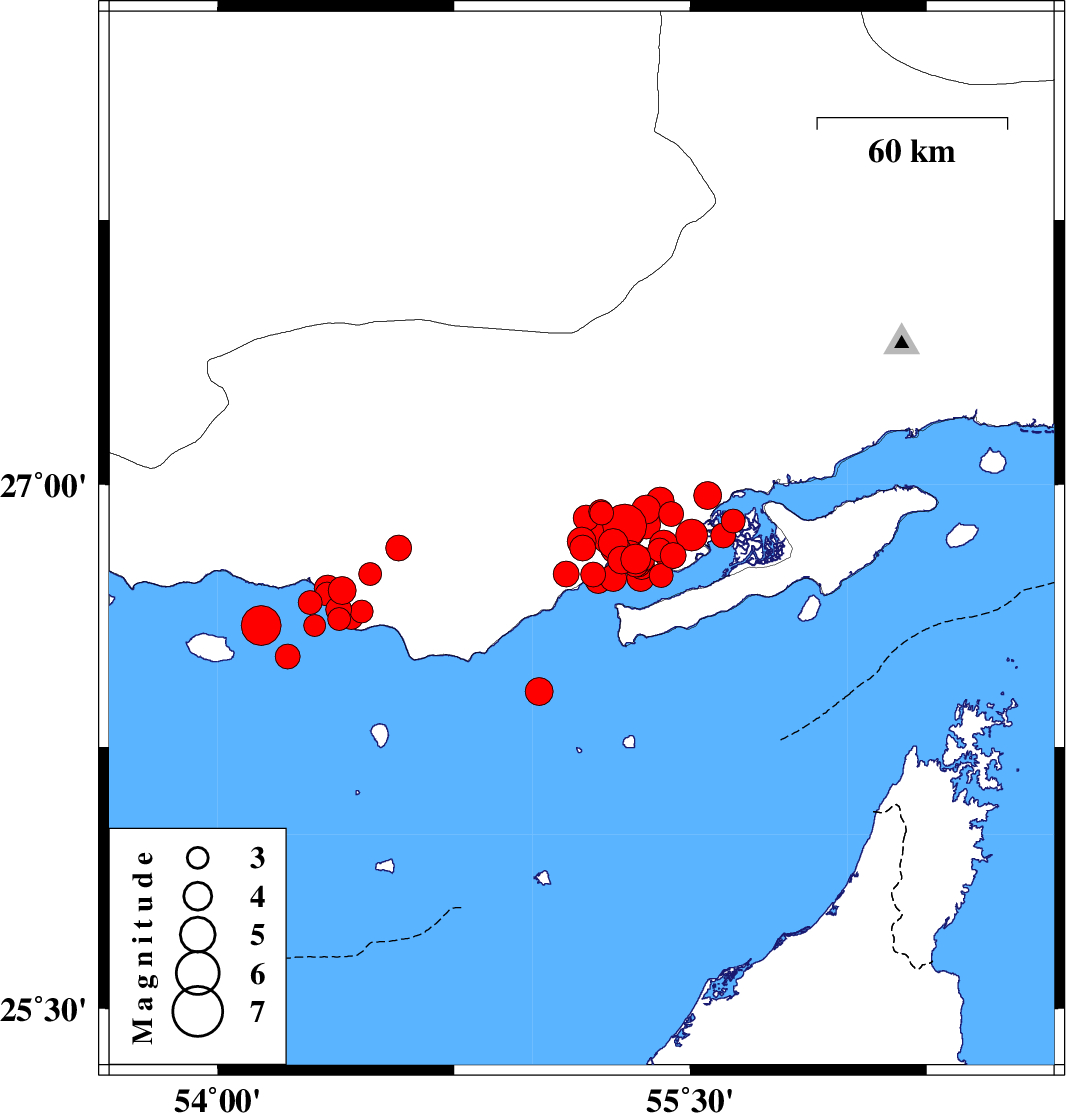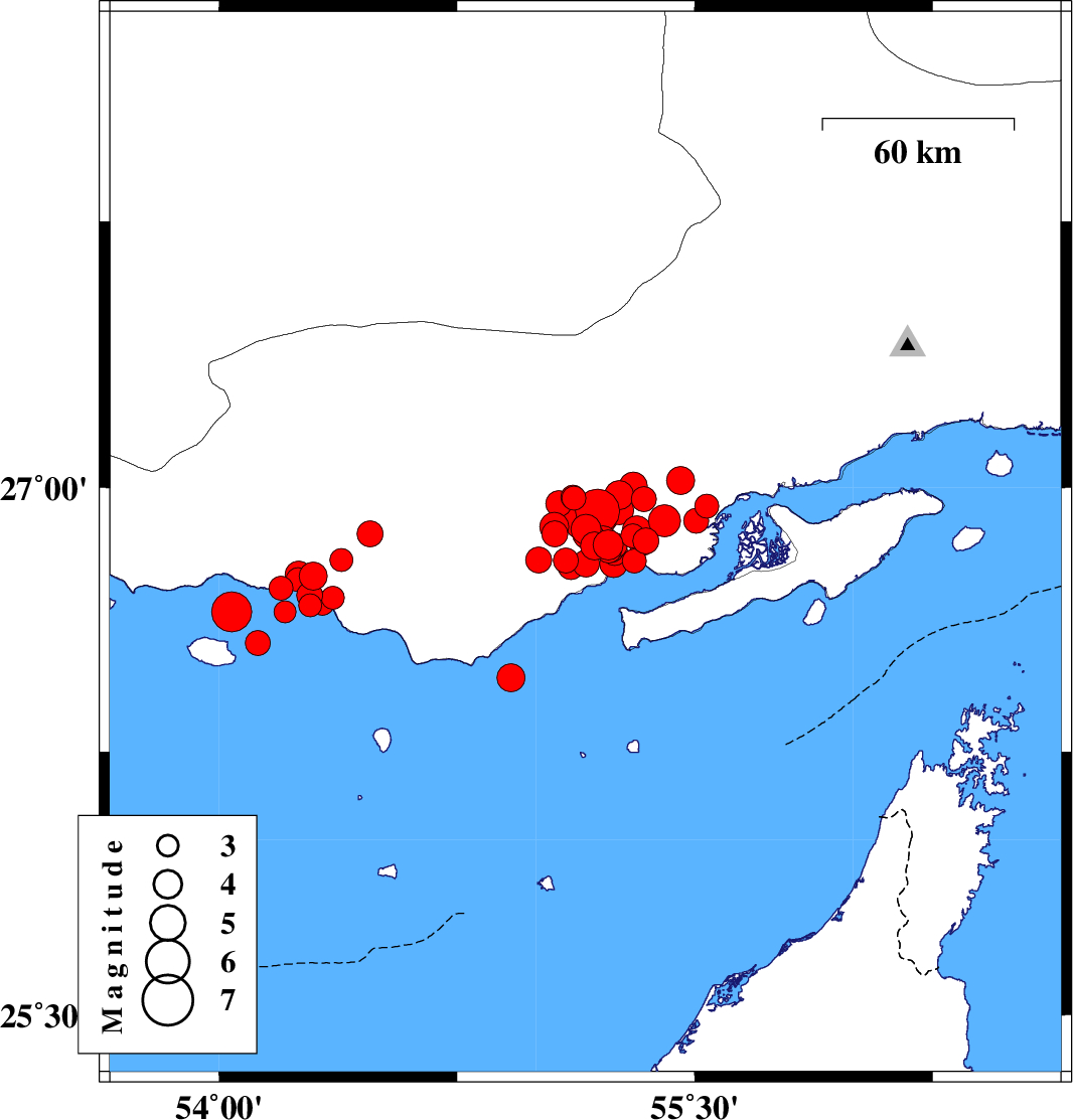 2022/07/01 21:53:22.8 02:23:22.8 26.73555.34312 ML:3.9 Persian Gulf, 54 km North-East of Bandar-e lengeh