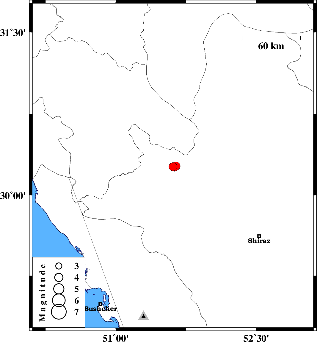| 2022/07/03 | 10:35:40.0 | 15:05:40.0 | 30.259 | 51.627 | 8 | ML:4 | Fars Province, 19 km North-East of Nurabad |