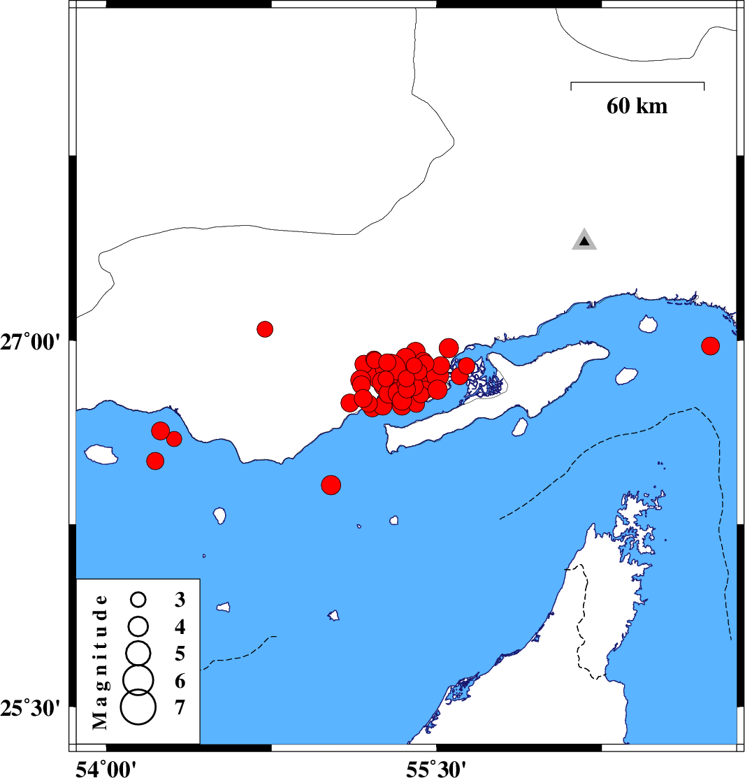 2022/07/03 12:18:59.5 16:48:59.5 26.63154.2459 ML:3.7 Persian Gulf, 64 km South-West of Bastak