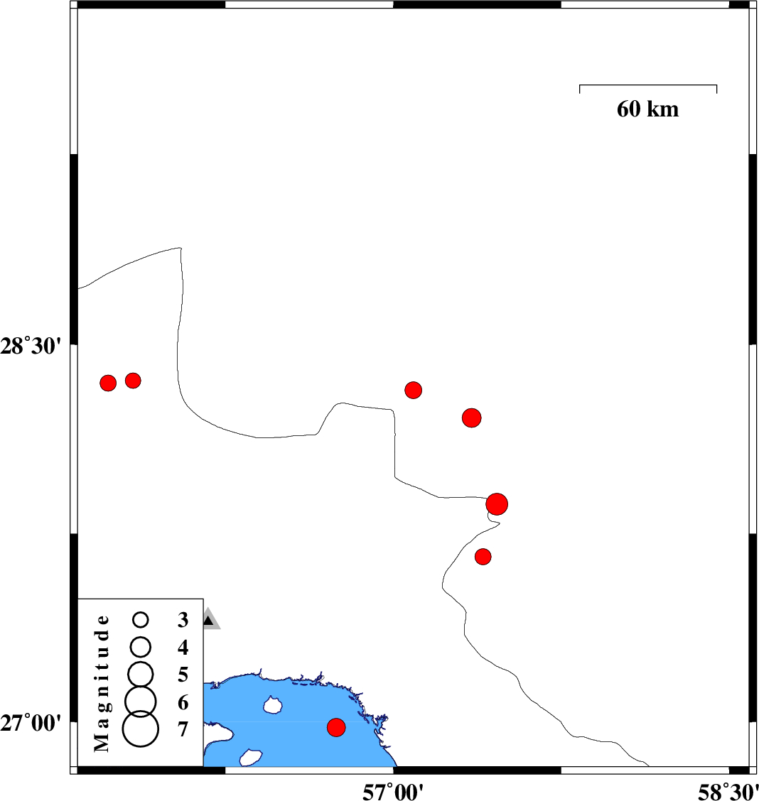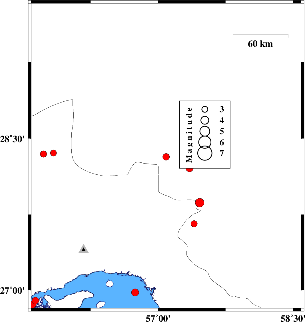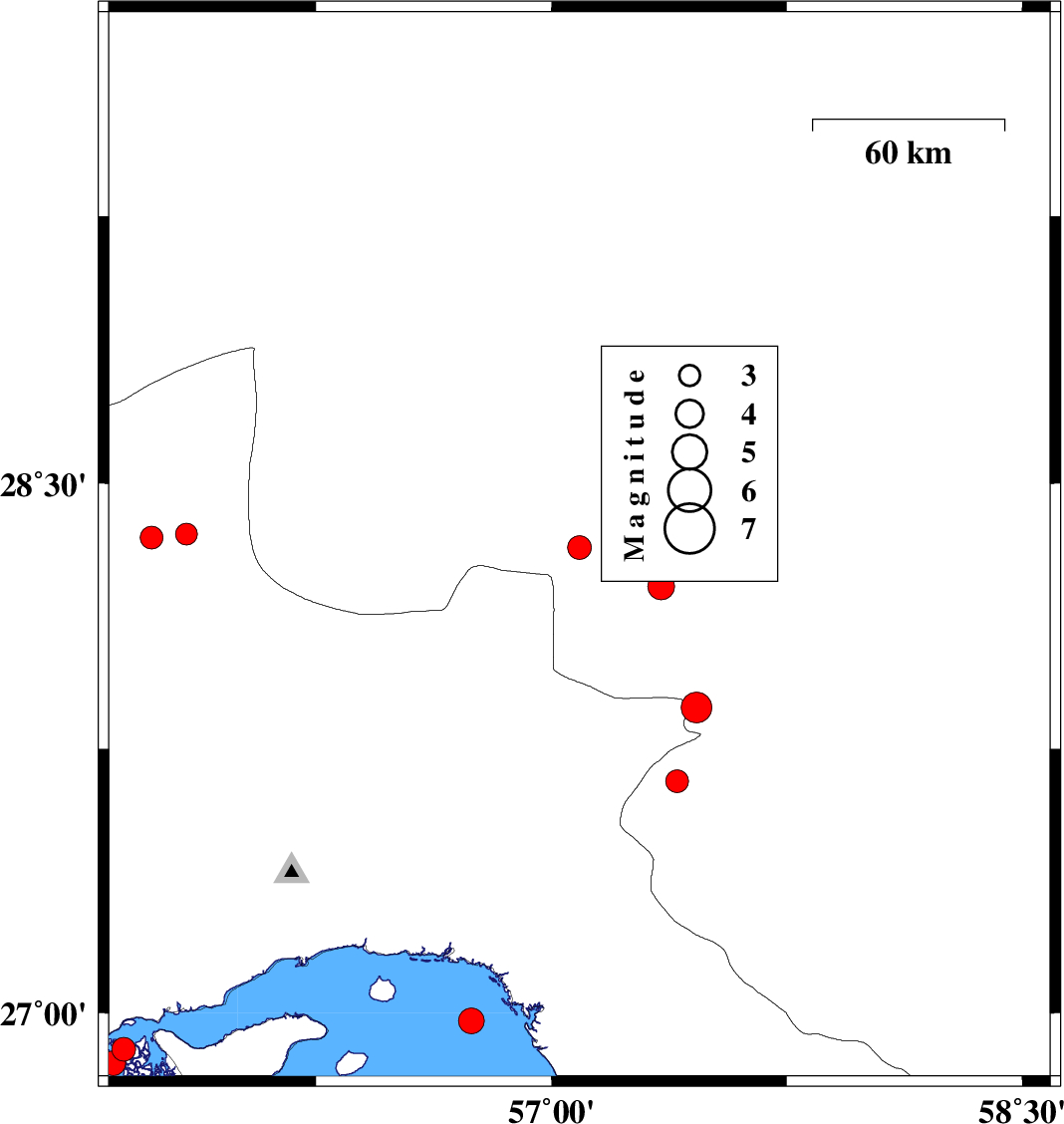 | 2022/07/08 | 11:37:27.4 | 16:07:27.4 | 28.32 | 57.089 | 7 | ML:3.4 | Kerman Province, 72 km North-West of Kahnuj | ||