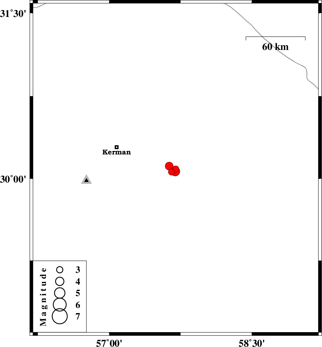 2022/07/17 03:50:41.7 08:20:41.7 30.06757.69512 ML:4.4 Kerman Province, 64 km South-East of Kerman