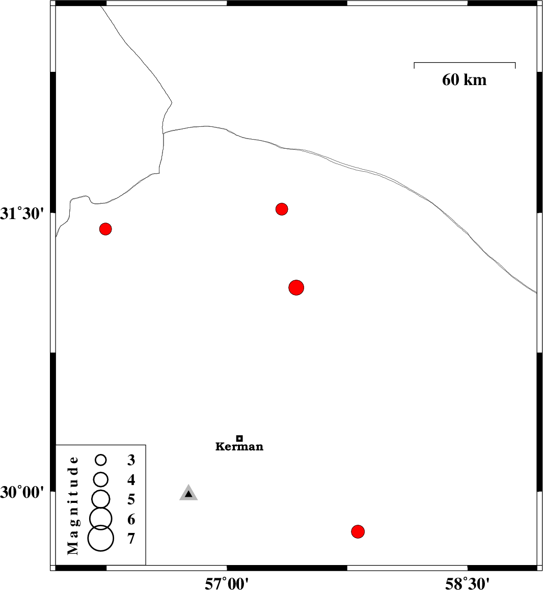 | 2022/08/10 | 19:32:36.3 | 00:02:36.3 | 29.782 | 57.816 | 12 | ML:3.6 | Kerman Province, 124 km North of Jiroft |