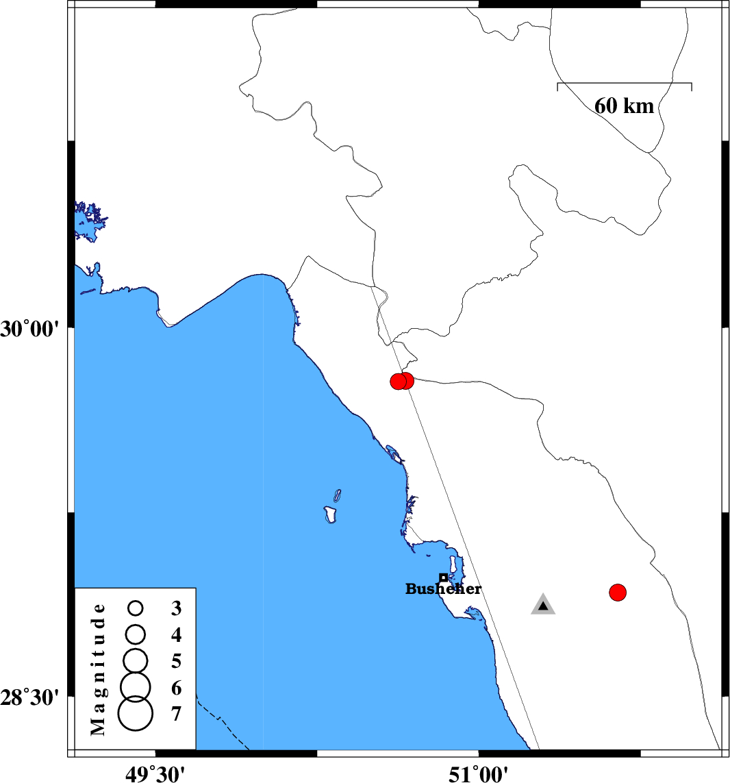 | 2022/08/06 | 03:43:59.5 | 08:13:59.5 | 29.784 | 50.66 | 12 | ML:3.5 | Bushehr Province, 27 km North-East of Bandar-e genaveh | ||