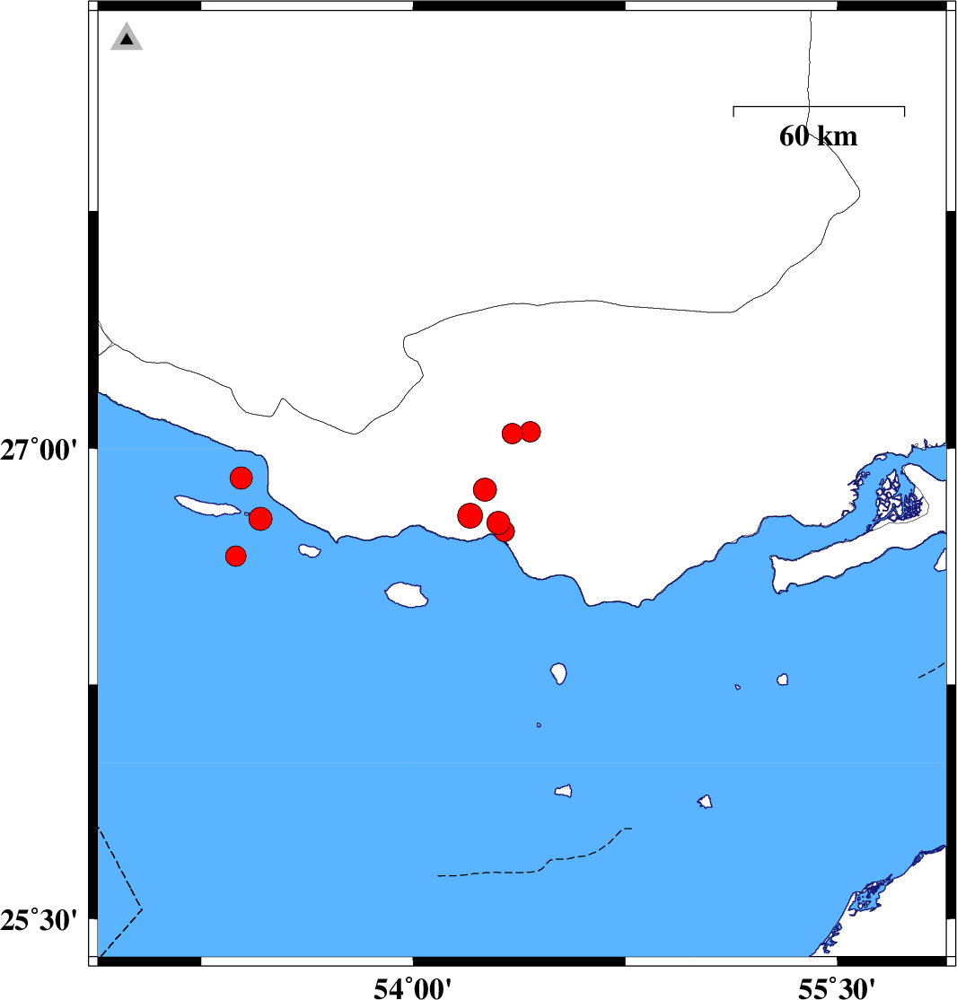 Persian Gulf, 50 km North-East of Bandar-e lengeh | |
