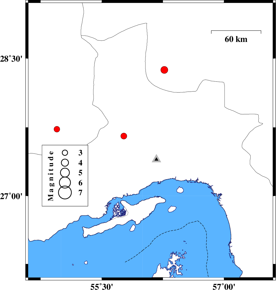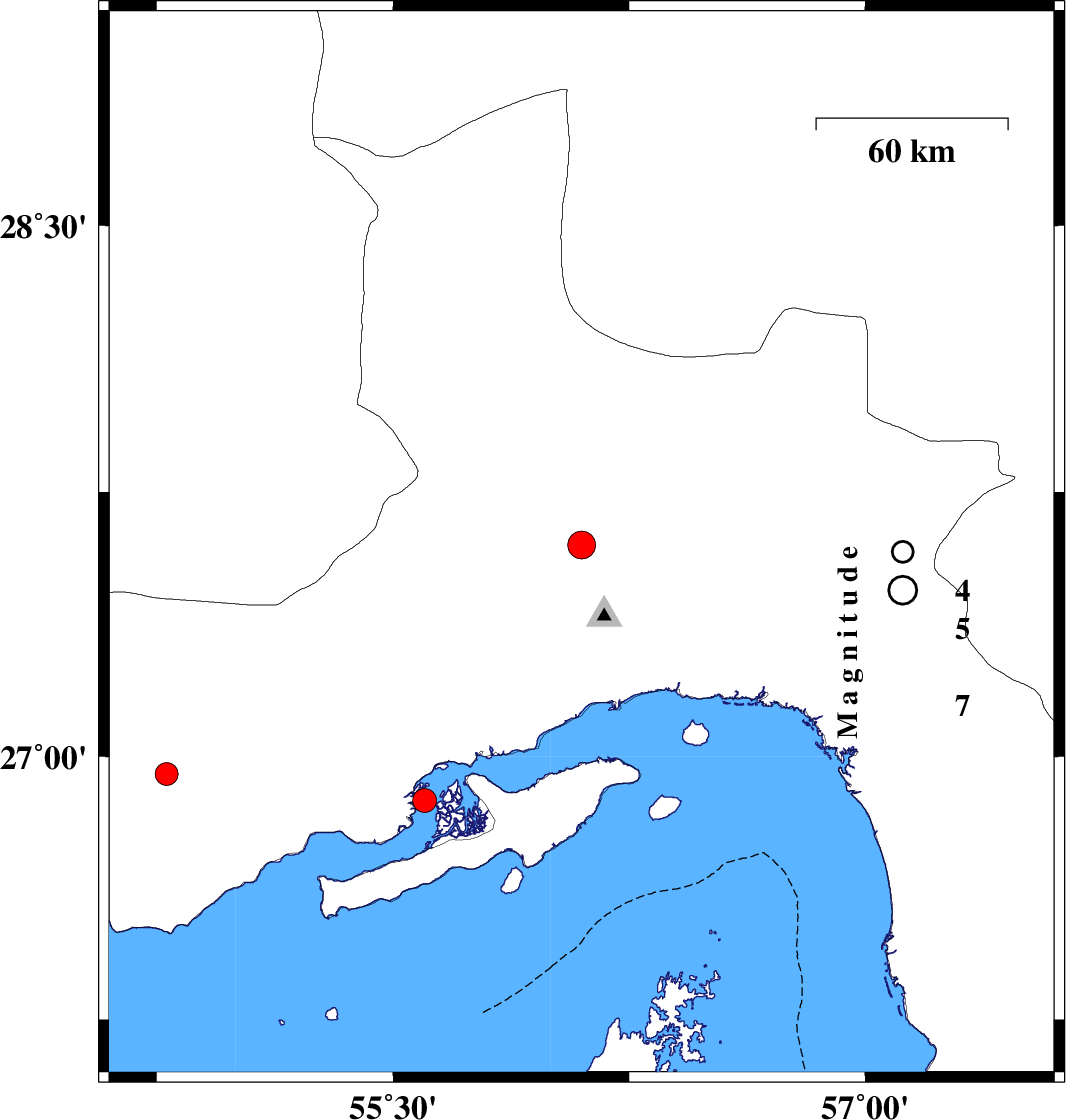 | 2022/08/26 | 03:05:54.1 | 07:35:54.1 | 27.601 | 56.099 | 7 | ML:4 | Hormozgan Province, 50 km North-West of Bandar-e abbas | ||