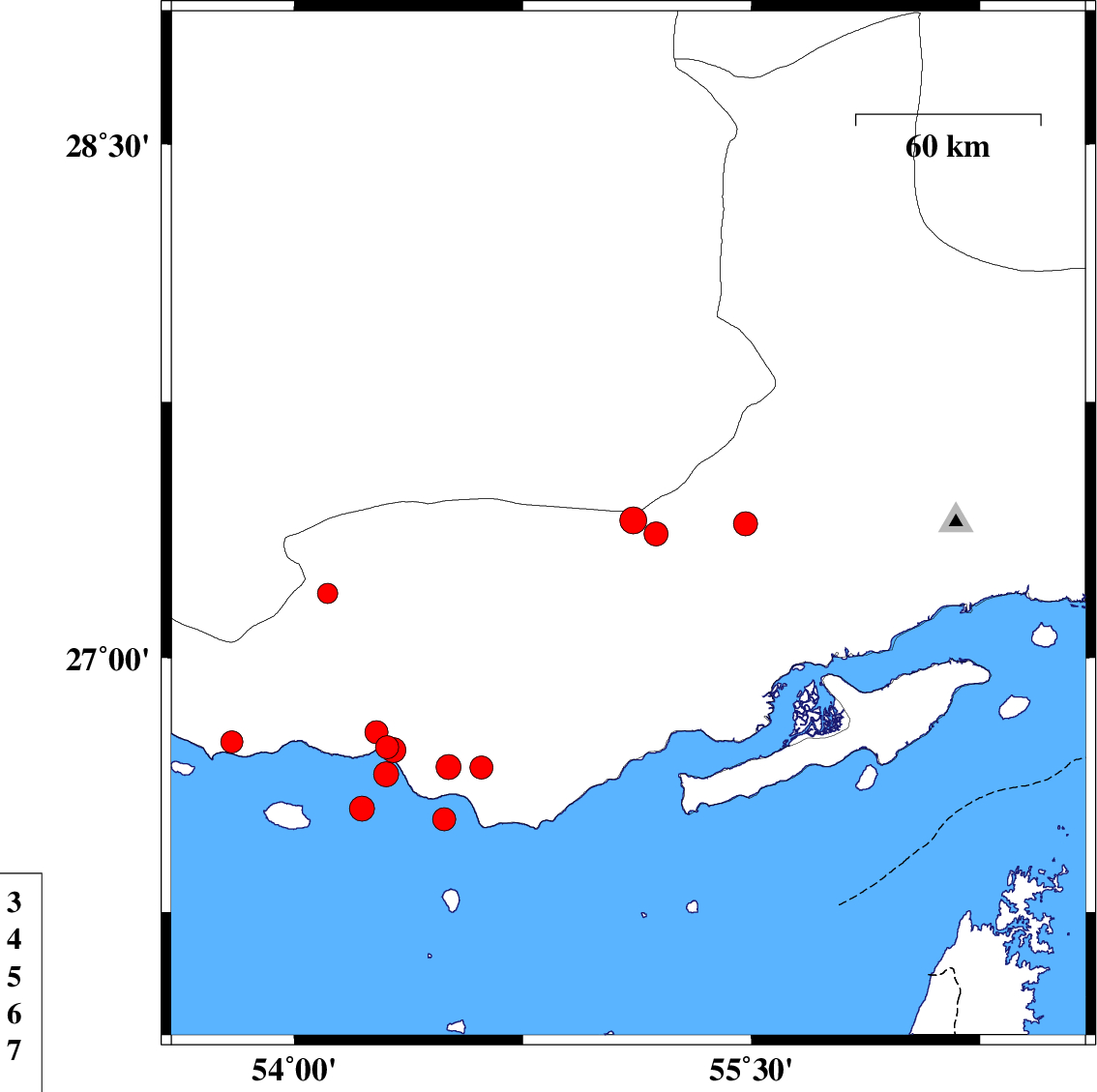 Persian Gulf, 66 km North-East of Bandar-e lengeh | |