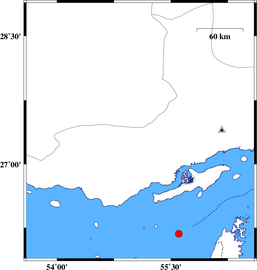 | 2022/08/24 | 21:53:08.2 | 02:23:08.2 | 26.875 | 55.601 | 12 | ML:3.4 | Persian Gulf, 67 km -West of Qeshm | ||