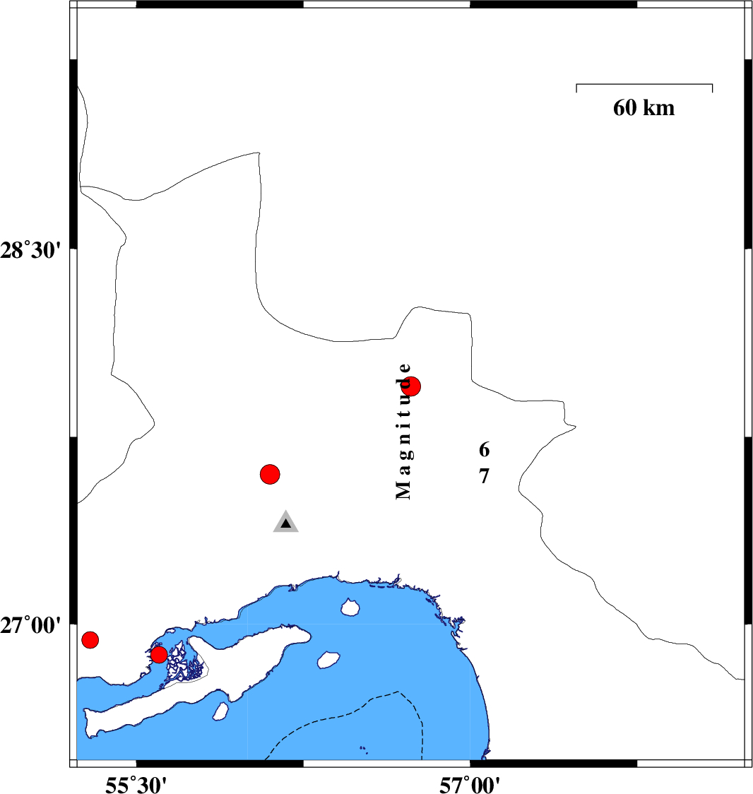 | 2022/08/26 | 03:05:54.1 | 07:35:54.1 | 27.601 | 56.099 | 7 | ML:4 | Hormozgan Province, 50 km North-West of Bandar-e abbas | ||