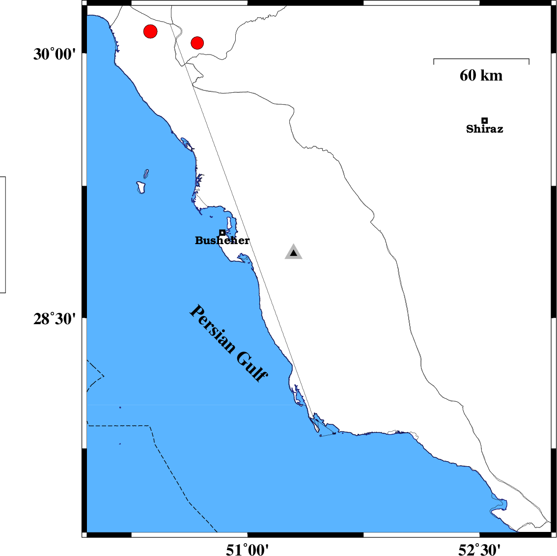2022/08/06 | 04:30:10.1 | 09:00:10.1 | 29.781 | 50.626 | 9 | ML:3.4 | Bushehr Province, 25 km North-East of Bandar-e genaveh | ||