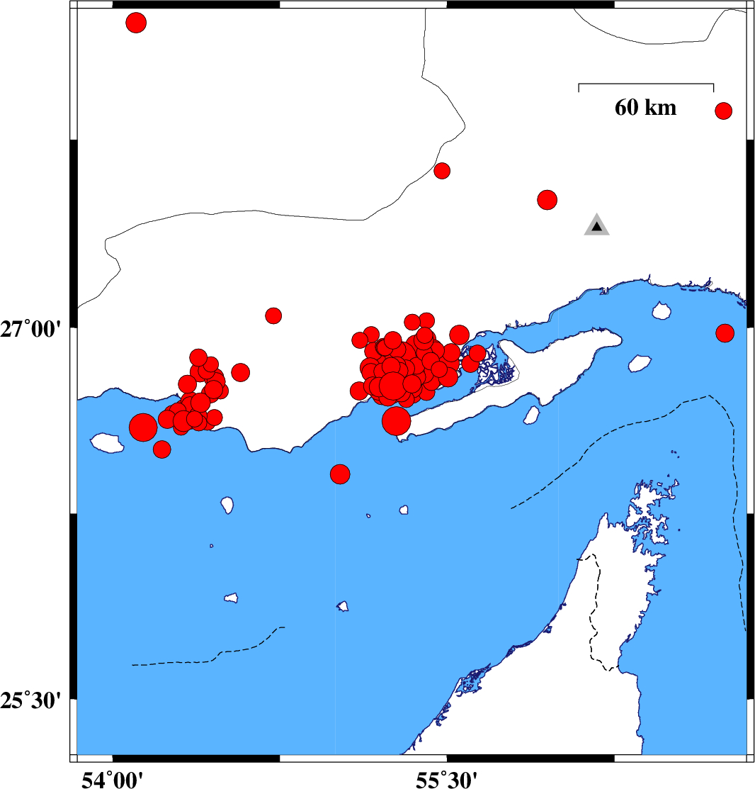 2022/06/24 23:47:23.3 04:17:23.3 26.65154.2712 ML:3.7 Persian Gulf, 62 km South of Bastak