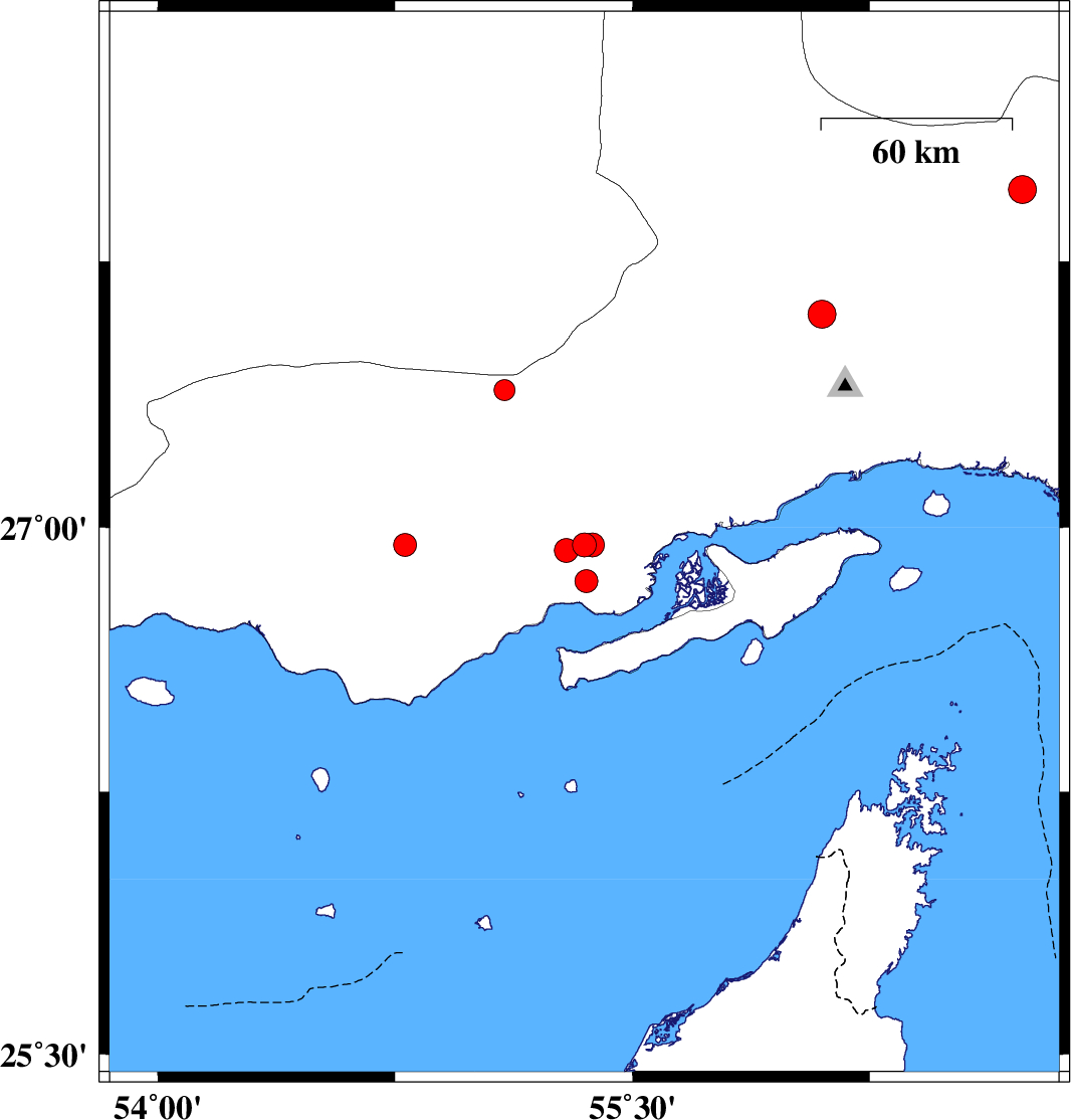 2022/08/26 | 03:05:54.1 | 07:35:54.1 | 27.601 | 56.099 | 7 | ML:4 | Hormozgan Province, 50 km North-West of Bandar-e abbas |