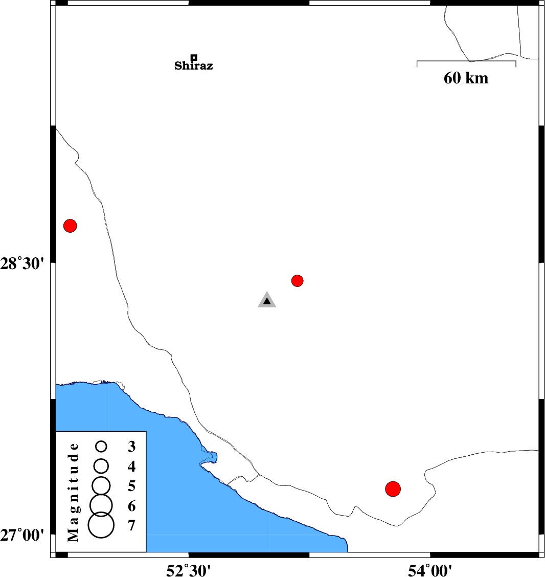 | 2022/08/27 | 15:47:15.0 | 20:17:15.0 | 28.702 | 51.764 | 12 | ML:3.6 | Bushehr Province, 39 km -East of Khormog | ||