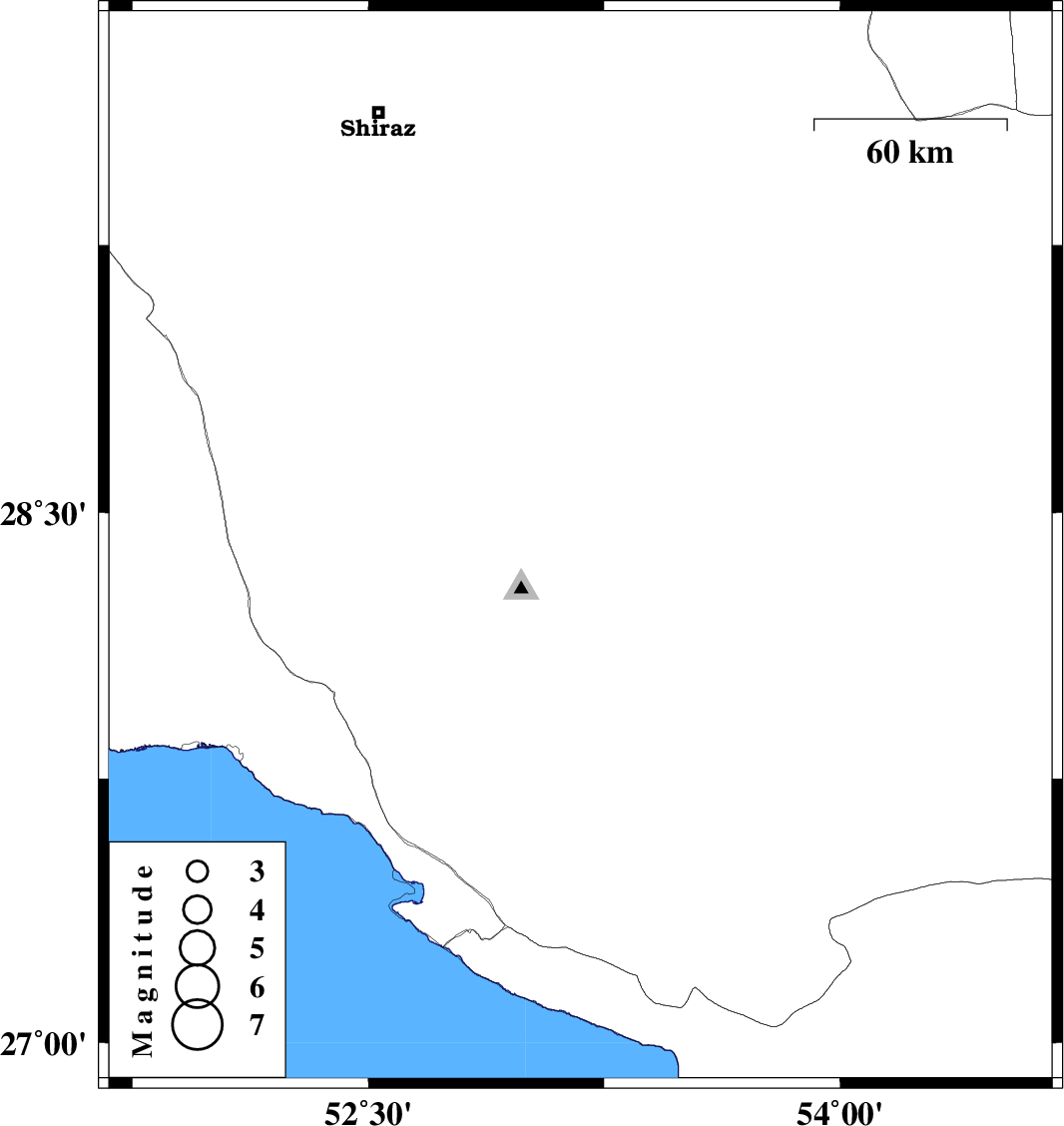 | 2022/09/04 | 22:24:26.8 | 02:54:26.8 | 28.401 | 53.175 | 11 | ML:3.3 | Fars Province, 16 km -East of Qir va Karzin |