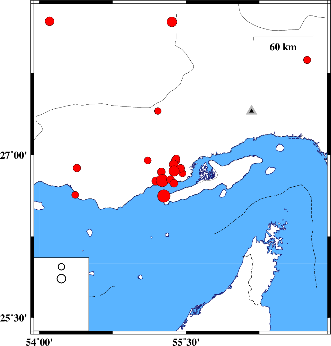 2022/07/23 16:07:46.3 20:37:46.3 26.76455.25810 ML:5.6 Persian Gulf, 49 km North-East of Bandar-e lengeh