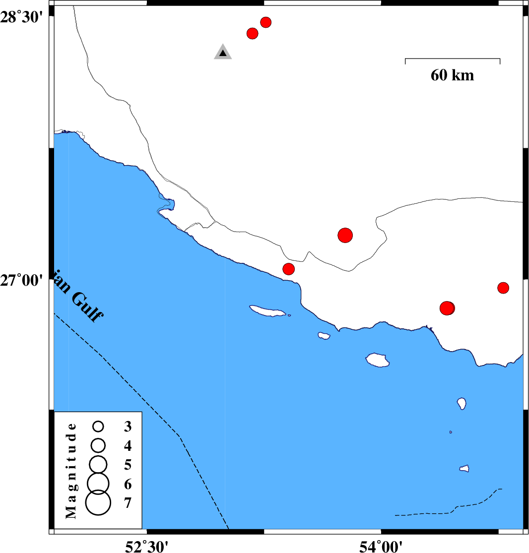 | 2022/09/04 | 22:24:26.8 | 02:54:26.8 | 28.401 | 53.175 | 11 | ML:3.3 | Fars Province, 16 km -East of Qir va Karzin | ||