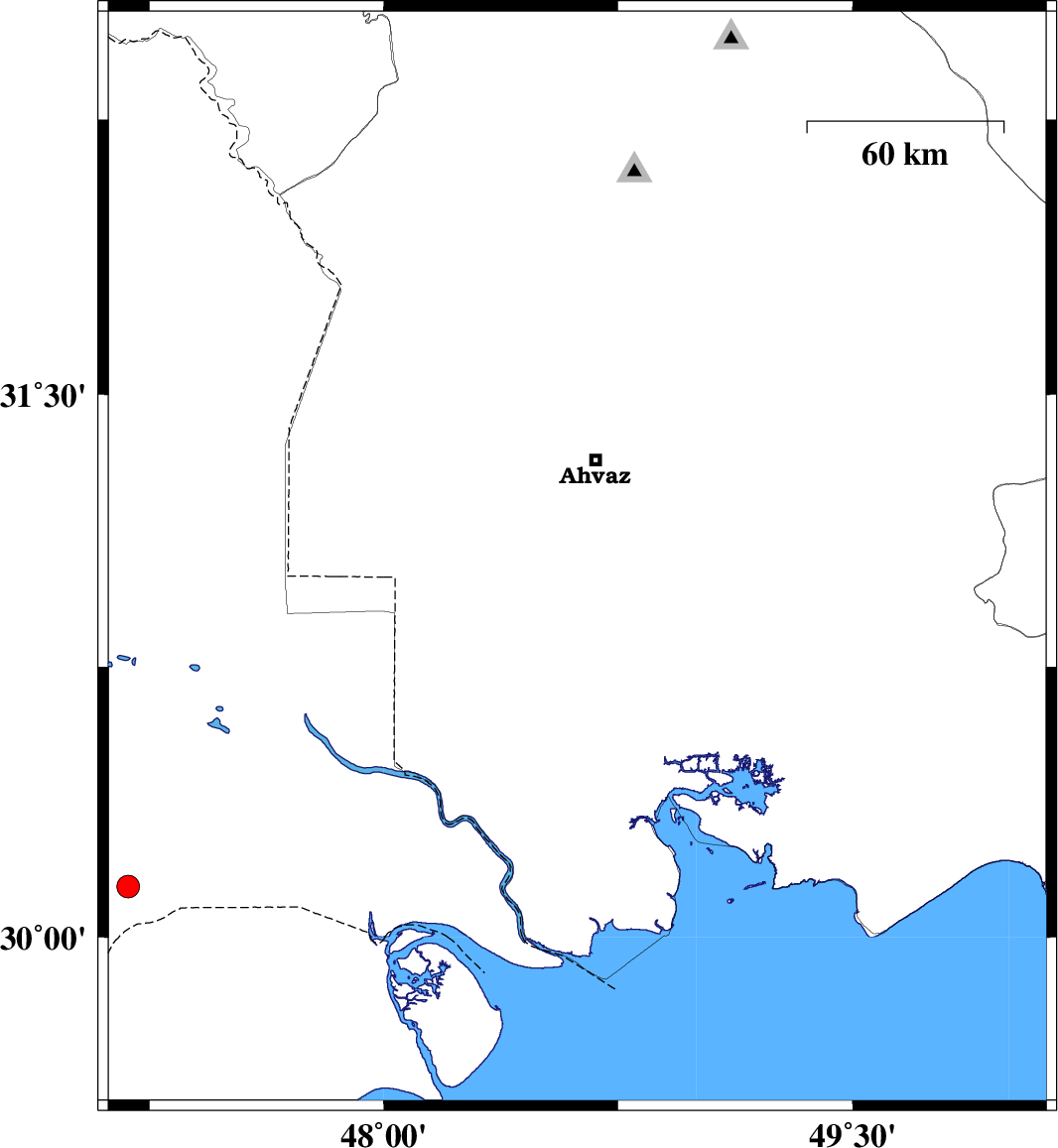 2022/08/25 | 19:58:31.1 | 00:28:31.1 | 30.69 | 48.274 | 12 | ML:3.5 | Khoozestan Province, 30 km North of Khorramshahr |