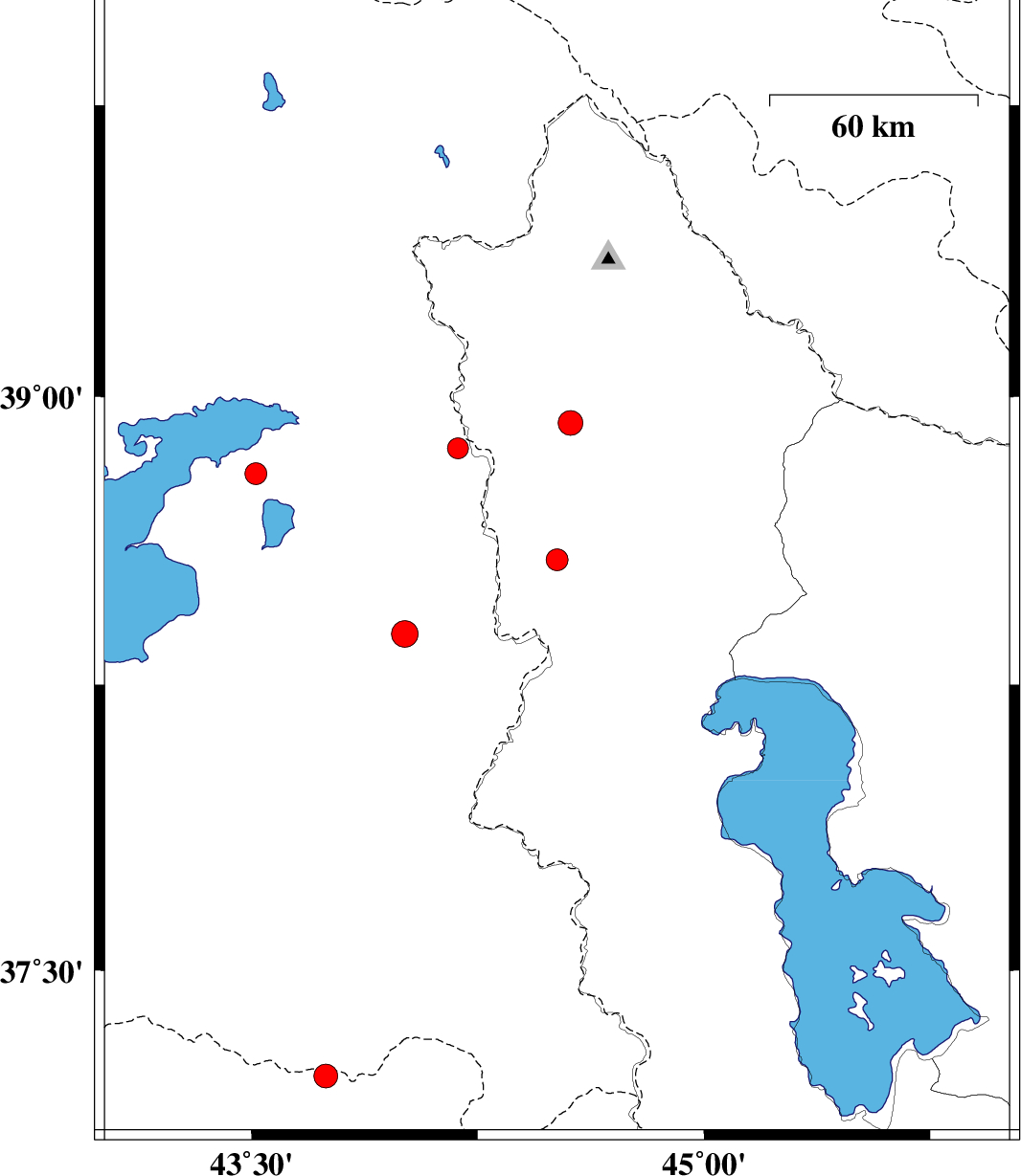 | 2022/09/11 | 04:03:14.1 | 08:33:14.1 | 38.8 | 43.514 | 12 | ML:3.2 | Turkey, 83 km South-West of Seyah Cheshmah | ||