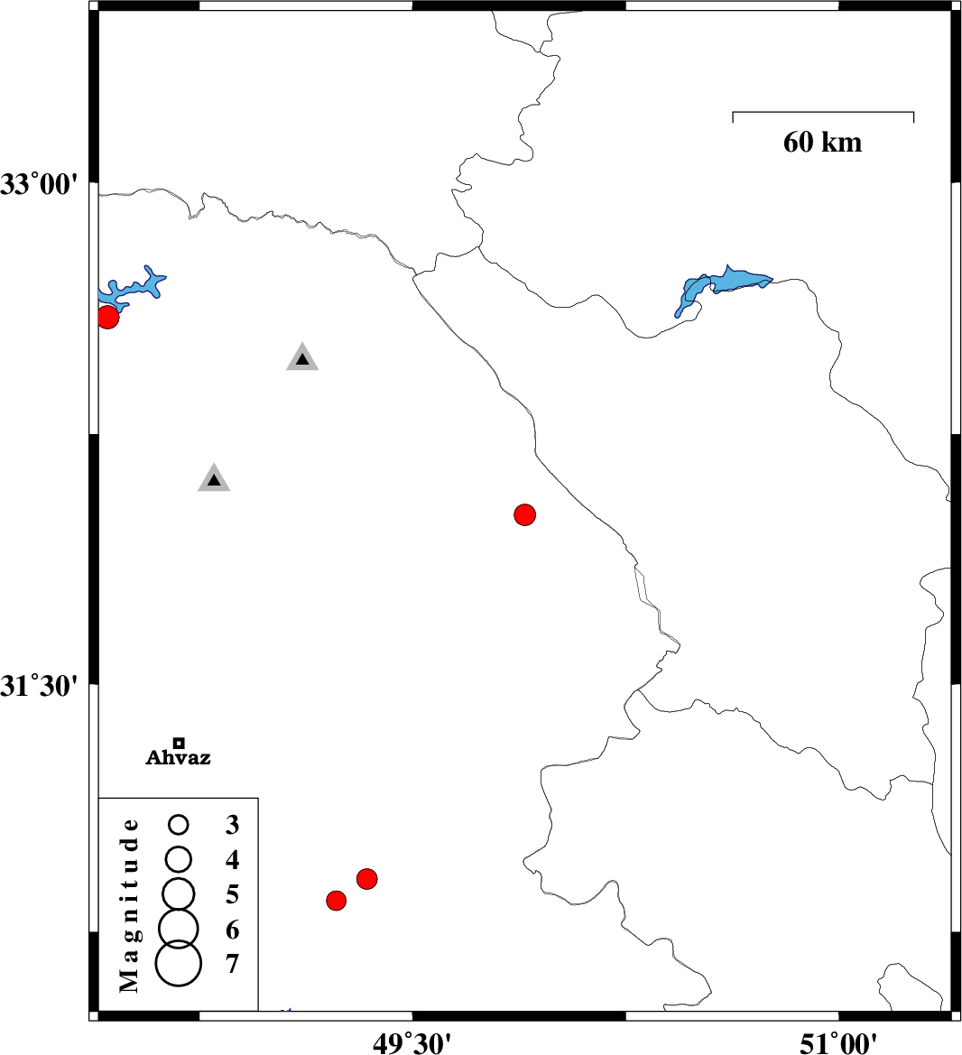 | 2022/09/11 | 07:35:25.2 | 12:05:25.2 | 31.013 | 48.592 | 12 | ML:4 | Khoozestan Province, 35 km South of Ahvaz | ||