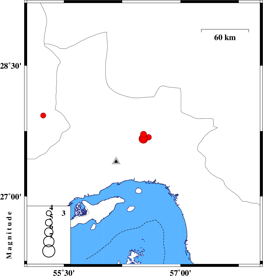 | 2022/09/26 | 00:18:35.3 | 03:48:35.3 | 27.713 | 56.524 | 14 | ML:3.7 | Hormozgan Province, 63 km North-East of Bandar-e abbas | ||