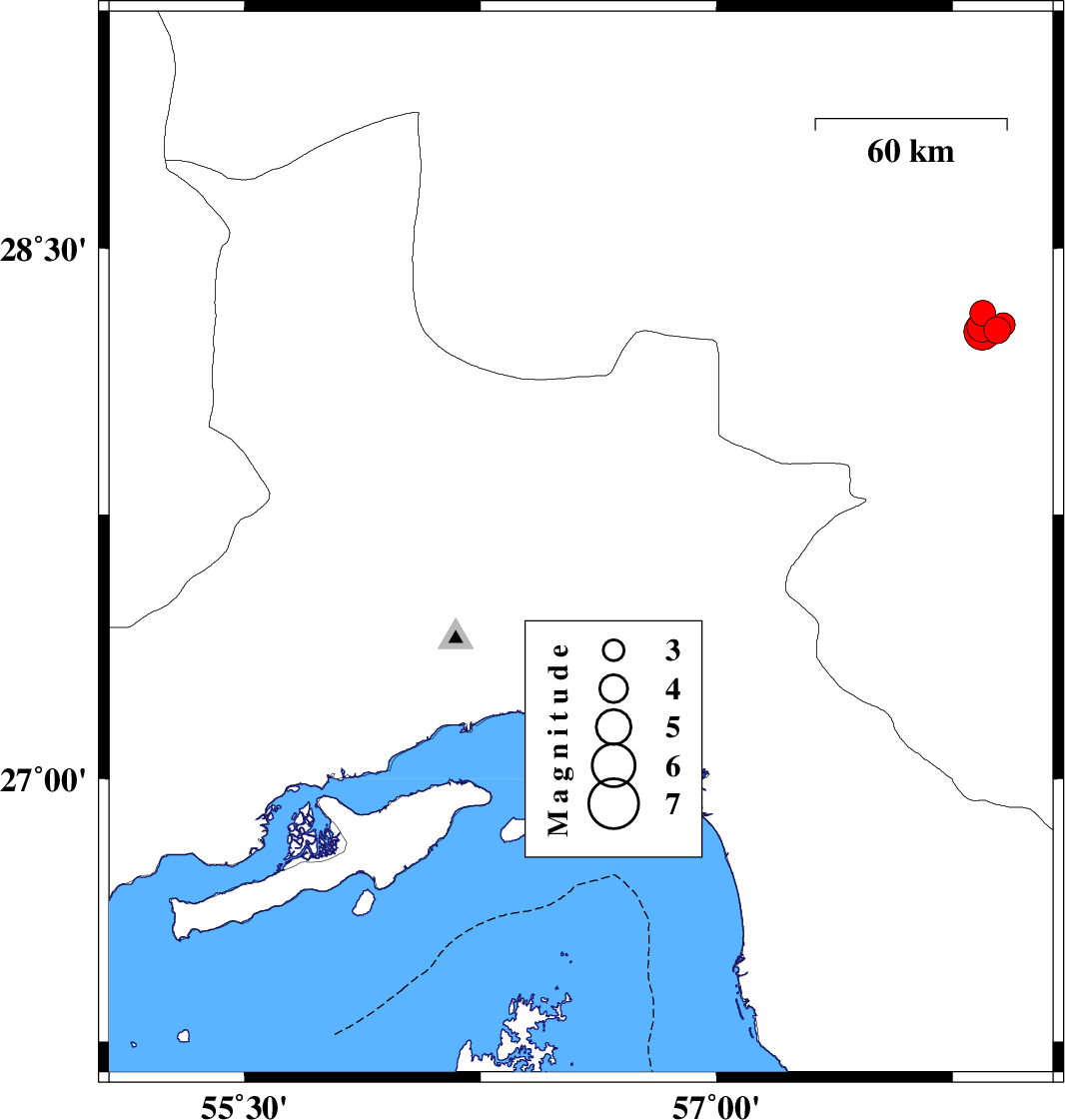 | 2022/09/26 | 00:18:35.3 | 03:48:35.3 | 27.713 | 56.524 | 14 | ML:3.7 | Hormozgan Province, 63 km North-East of Bandar-e abbas | ||