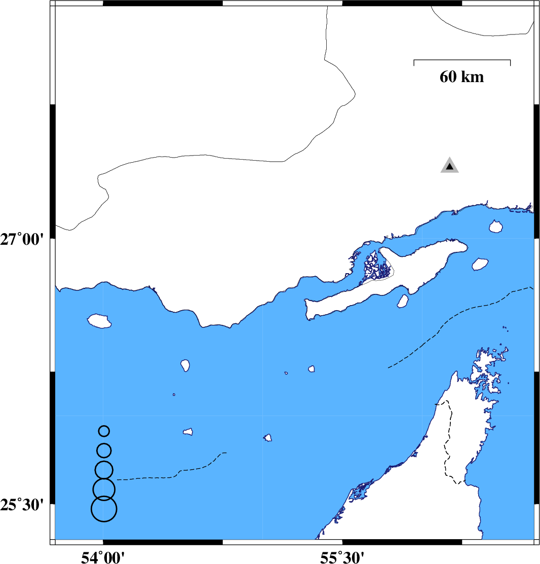 | 2022/09/26 | 00:18:35.3 | 03:48:35.3 | 27.713 | 56.524 | 14 | ML:3.7 | Hormozgan Province, 63 km North-East of Bandar-e abbas | ||