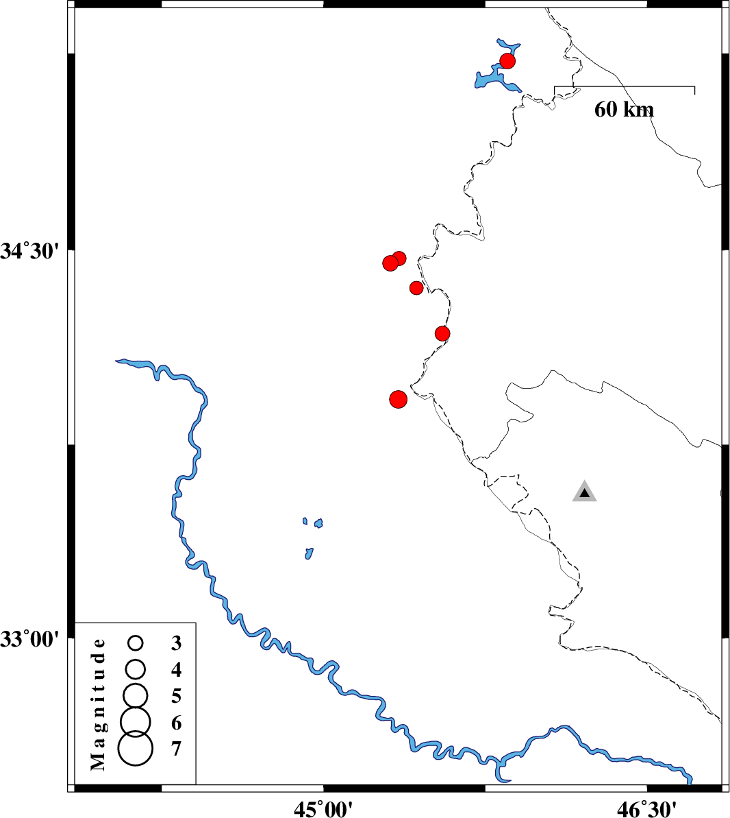 | 2022/08/31 | 17:20:09.0 | 21:50:09.0 | 34.468 | 45.35 | 12 | ML:3 | Iraq, 22 km -West of Qasr-E-Shirin |