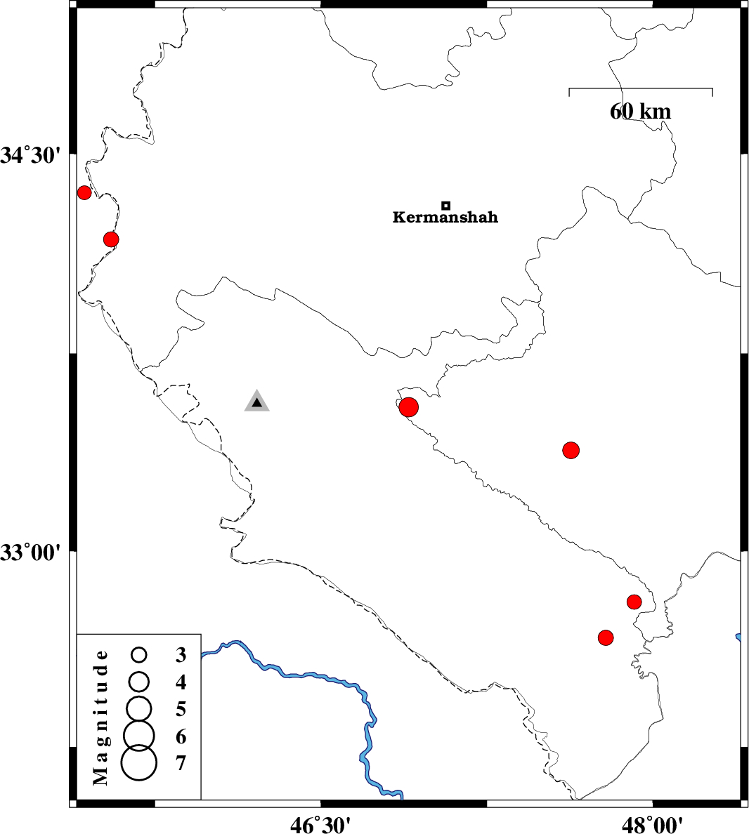 | 2022/09/01 | 05:34:06.6 | 10:04:06.6 | 34.179 | 45.551 | 12 | ML:3.1 | Iraq, 38 km South of Qasr-E-Shirin |